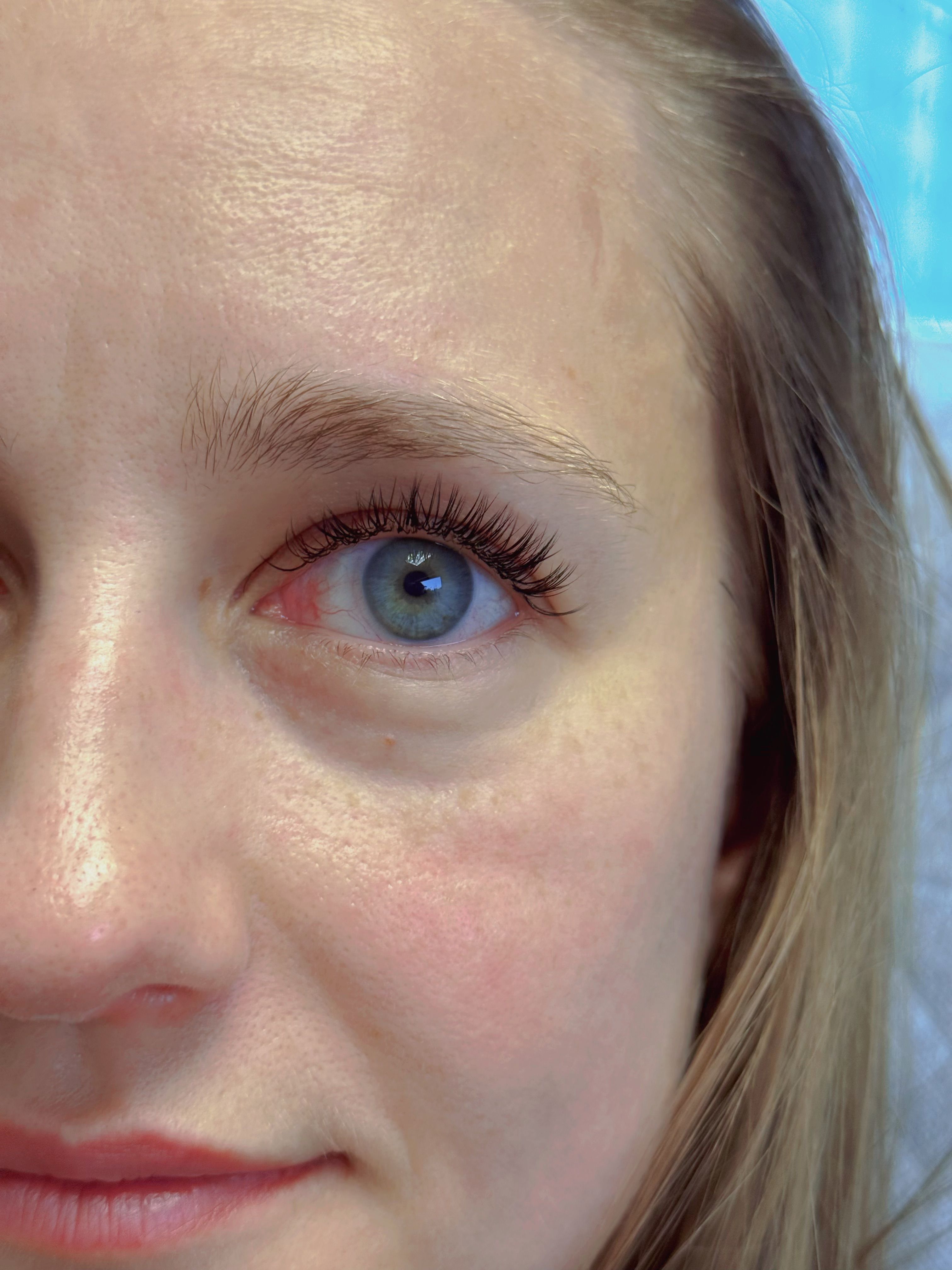 We will cleanse your eyes from any makeup and product residue. Your stylist will apply special patches and some tape to separate your bottom lashes. If anything feels uncomfortable you should let your artist know right away. It is also advised that you remove your contact lenses.
