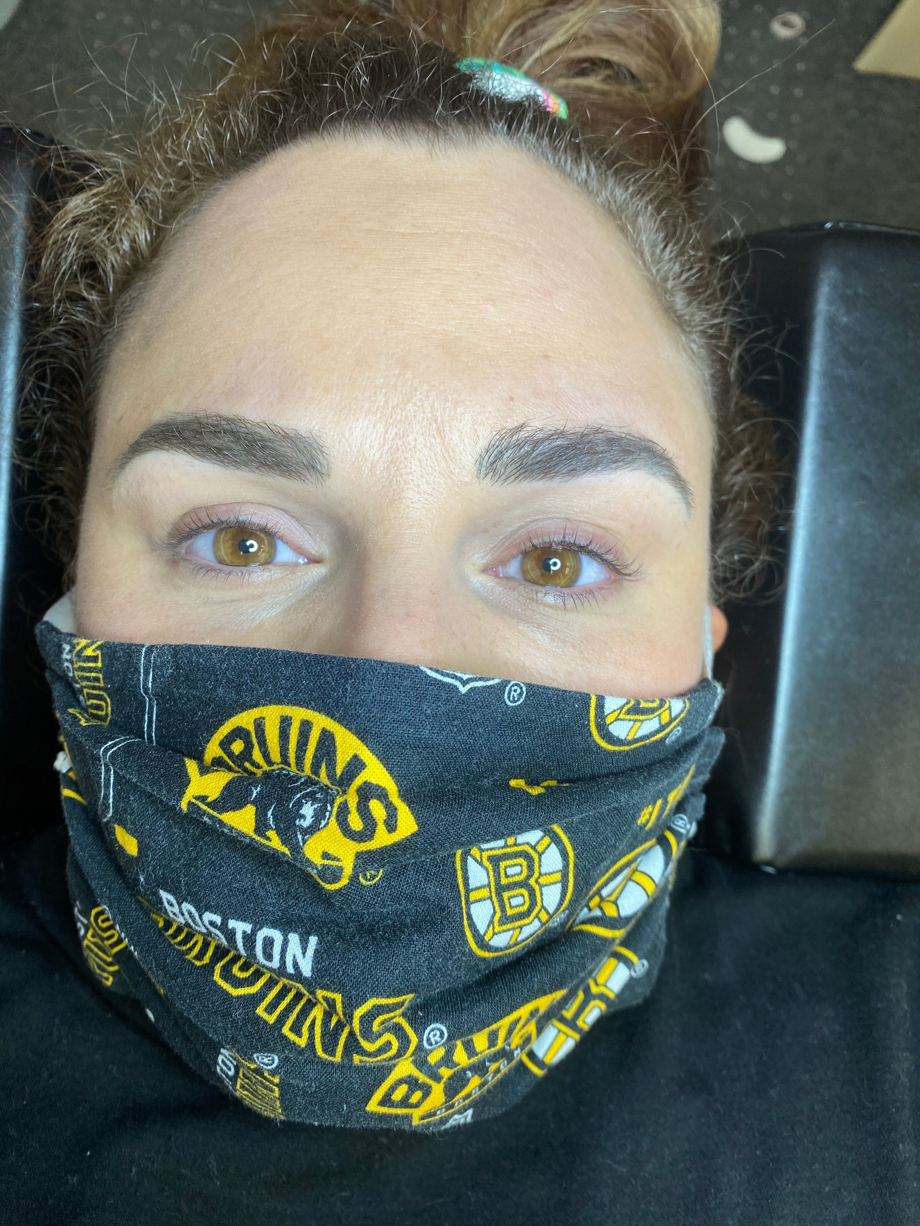 The adhesive takes about 24 hours to completely dry. During this period, please avoid water, sauna, and the gym (if possible). Please try not to rub your eyes or sleep with your face down on the pillow. Clean the lashes daily and brush them with a spoolie. Return for a touch-up 2-3 weeks after.