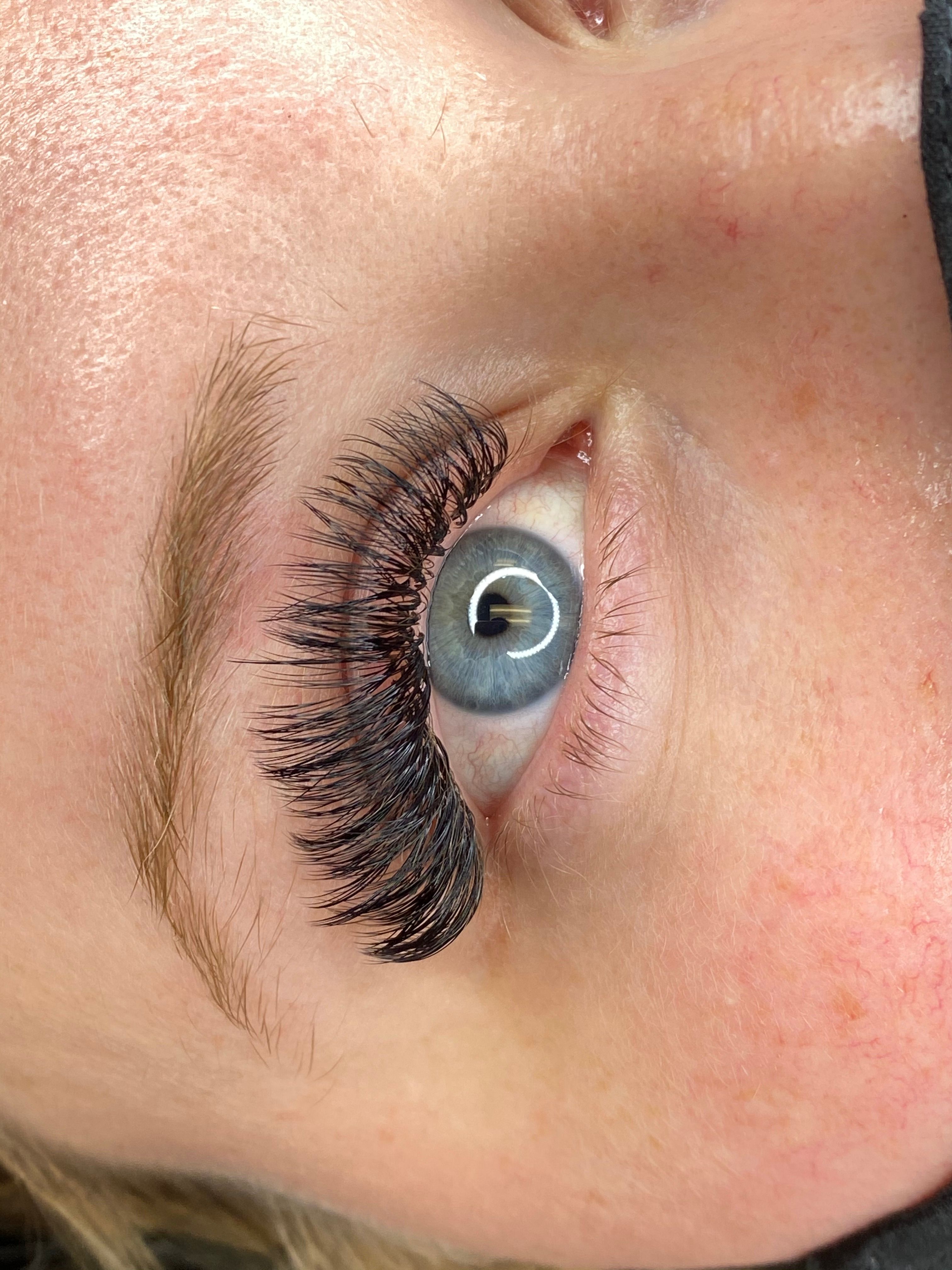 Russian volume eyelash extensions (same as mega volume in our salon) are an advanced technique where a lash artist takes 5-8 extremely thin faux lashes, creates a fan, and applies it to each of your natural eyelashes. Our talented artists customize each set to complement each client’s eyes. It is also a great option for someone who doesn’t have a lot of lashes but would like to have the fullest look possible. What makes this technique so amazing? We use lighter, thinner lashes and it allows us to give you a maximum fullness without compromising the comfort.